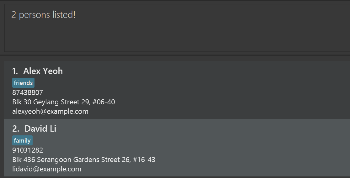 - Shows all members who attended Meeting2023AddressBook data are saved in the hard disk automatically after any command that changes the data. There is no need to save manually.